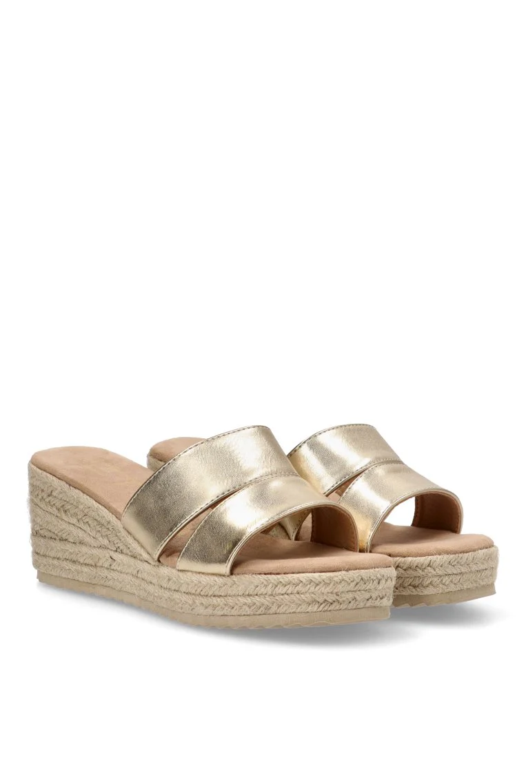 - Estilo: Un diseño de cuña y un color dorado que le dará un toque especial a tu look veraniego.