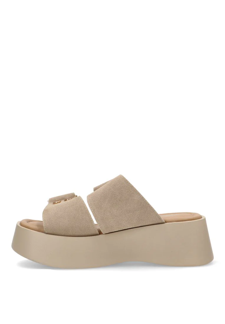 ¿Buscas unas sandalias cómodas, bonitas y con un toque especial para tus dÃas de sol? Las Sandalias Hebilla Dorada ETIKA BIANCA en color taupe son la elección perfecta. Su diseño con hebilla dorada y su doble suela les dan un toque moderno y elegante, ideales para cualquier look casual de verano.