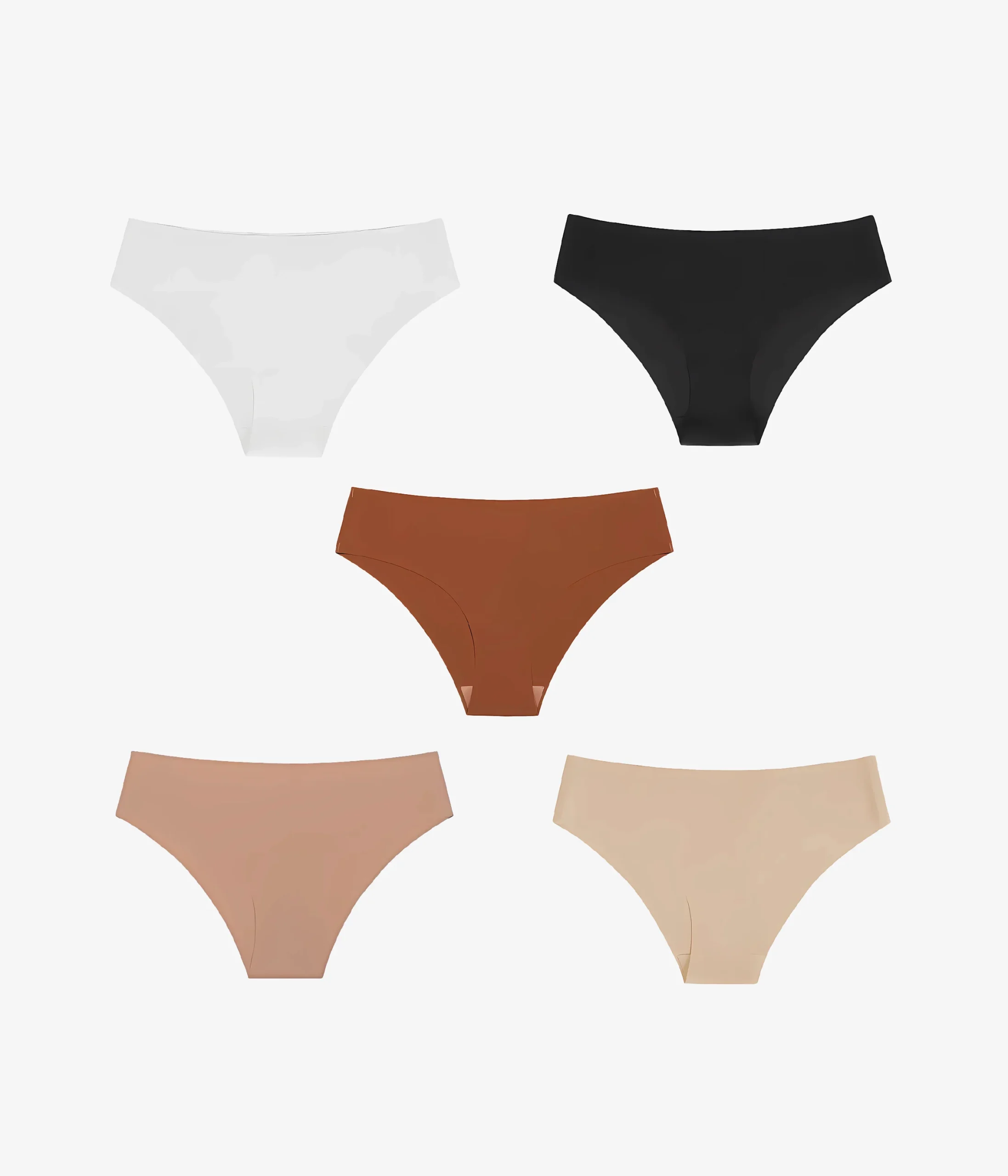 Diseño clásico de corte bajo sin costuras y con acabados cortados a láser, ideal como lencería invisible. Elástico suave en la cintura y puente de algodón para mayor frescura y comodidad.