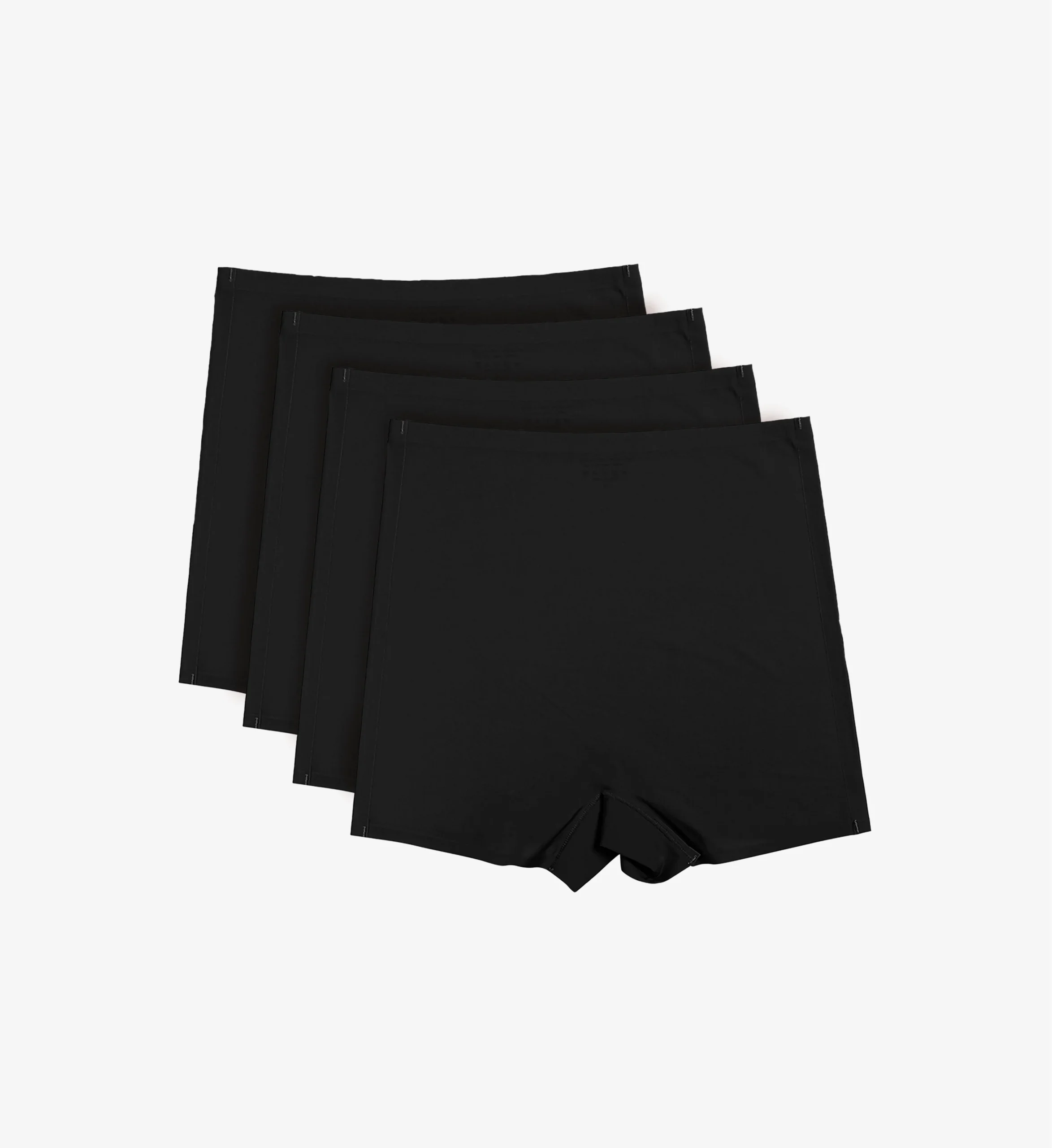 Boxers cortos estilo cintura alta con sujeción media, en tejido en mezcla de poliamida y elastano con puente de algodón, sin costuras y acabados cortados a láser. Ideal como lencerÃa invisible. Cintura elástica.