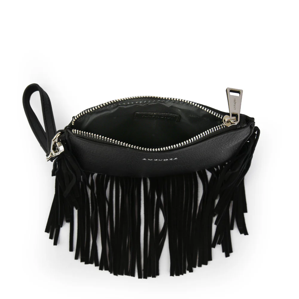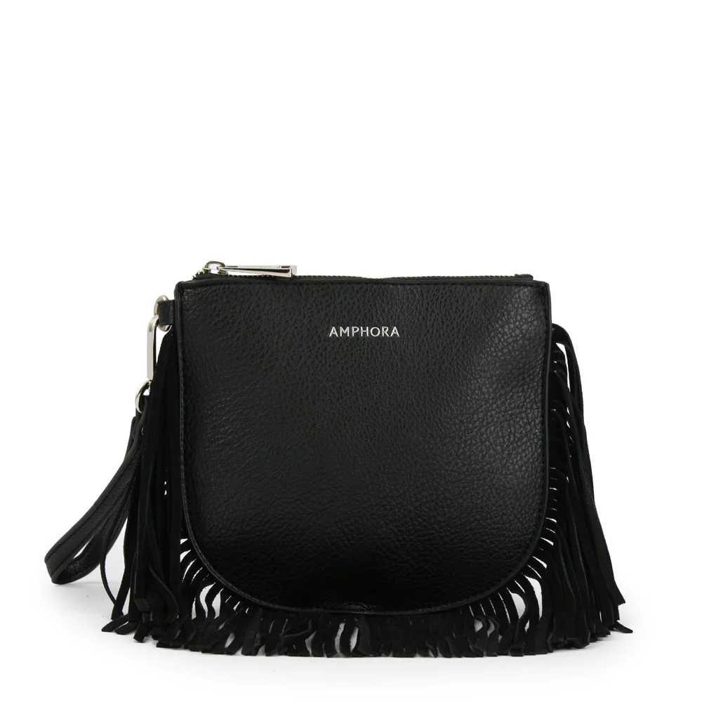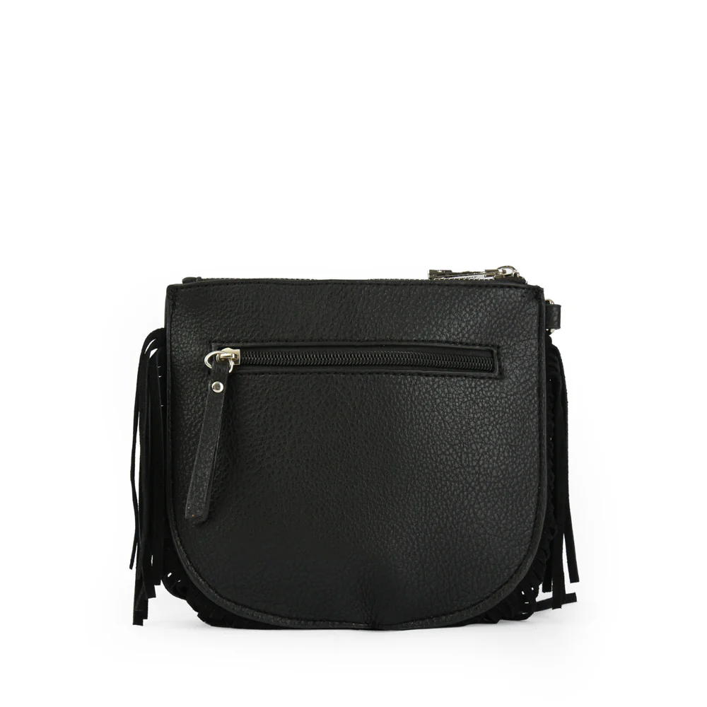 Desde un mundo lejano llega nuestra cartera esitlo sobre Sary, el bolso de mano de tamaño pequeño, que te robará el corazón con su estilo tejano. Confeccionada en PU liso, cuenta con tres bolsillos internos y dos externos con cierre metálico. Su correa es ajustable para adaptarla lo más comodo posible a tu espalda. ¿Lo mejor? Sus flecos que le aportán todo el diseño étnico que buscabas. Sary,nice to meet you!