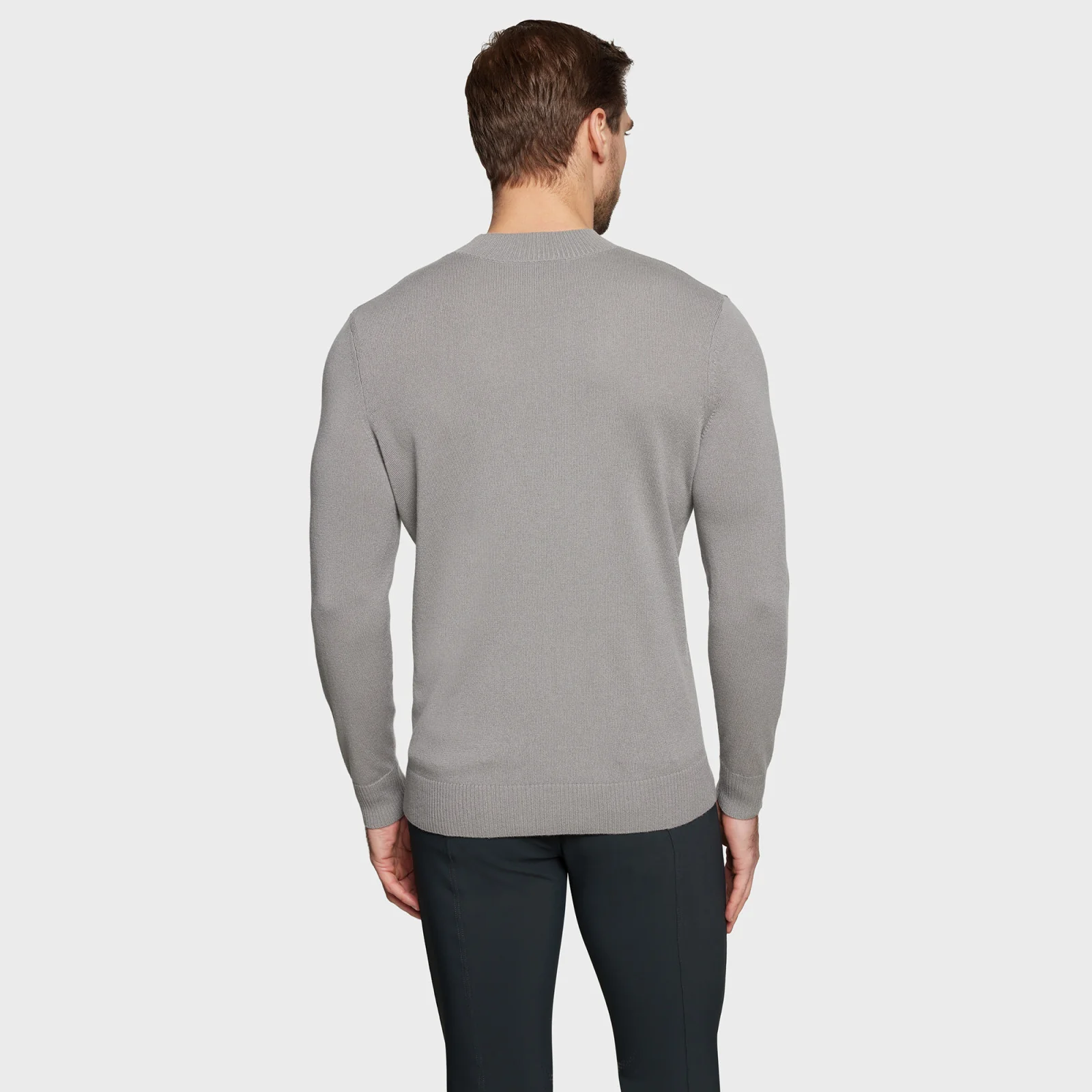 - Diseño sobrio con mangas largas y cuello redondo.