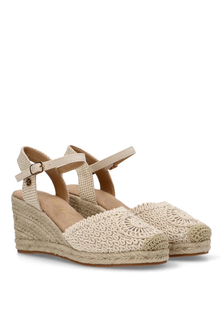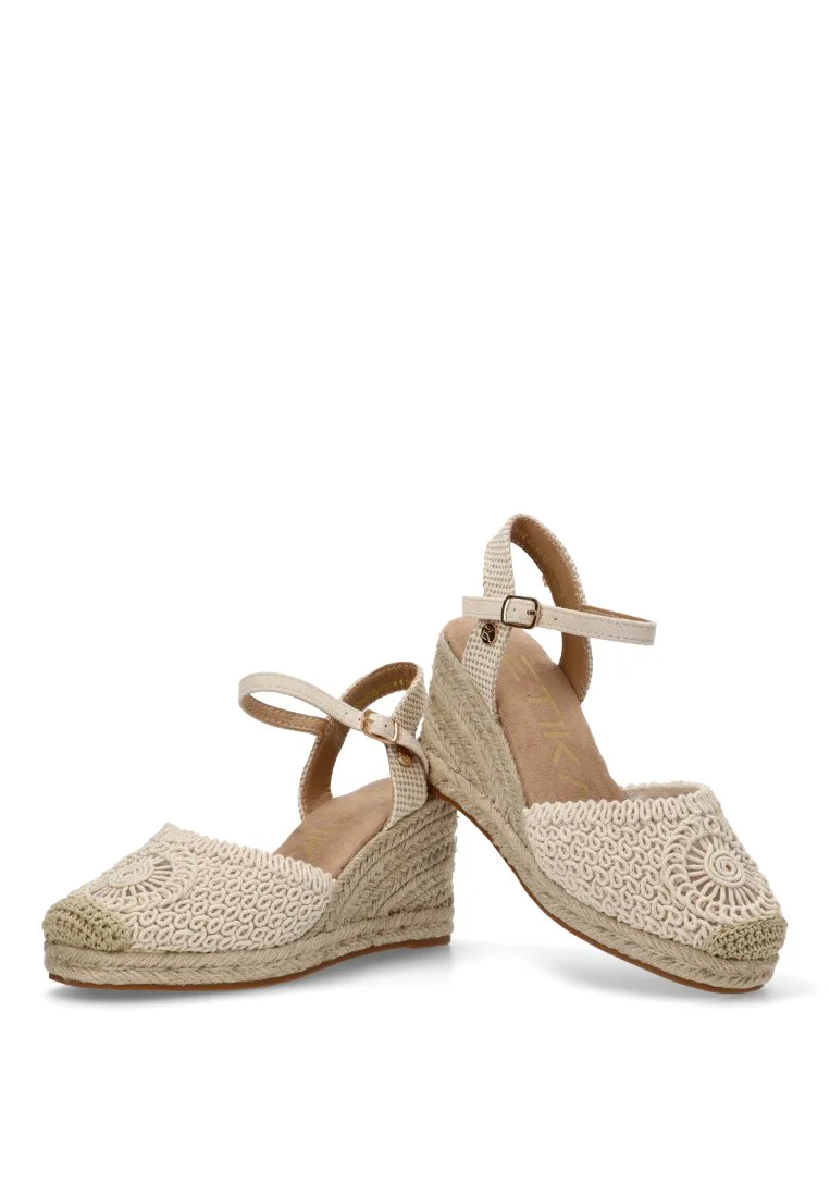¿Buscas unas sandalias cómodas, elegantes y con un toque veraniego? Las Valencianas Crochet ETIKA MANELI en color beige son la elección perfecta. Su diseño de crochet y su cuña media las hacen ideales para cualquier ocasión casual de verano.