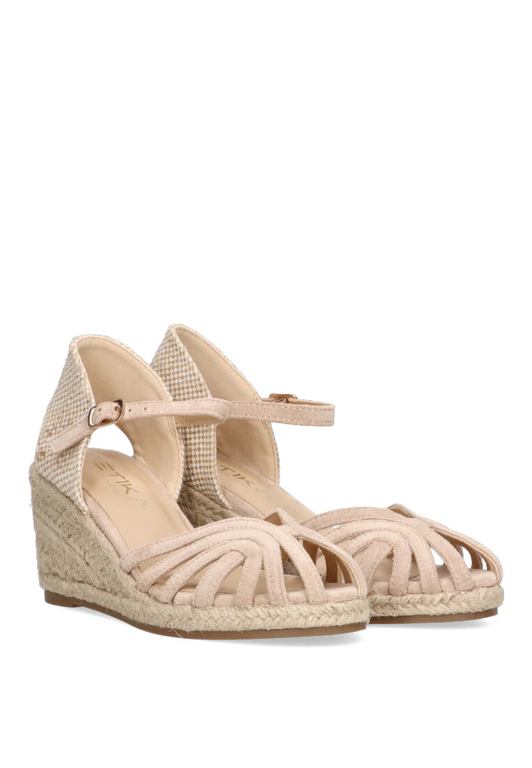 ¿Buscas unas sandalias cómodas, bonitas y con un toque especial para tus días de sol? Las Cuñas Media Tiras ETIKA TITOP en color beige son la elección perfecta. Su diseño de tiras y su cuña media las hacen ideales para cualquier look casual de verano.
