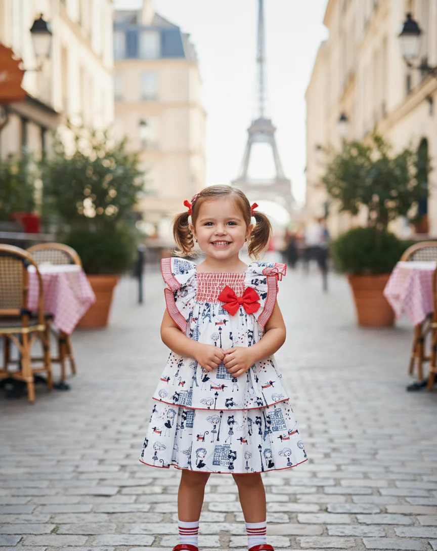 💚Vestido de rayas celeste con bordados y pecho de hilo artesanal .