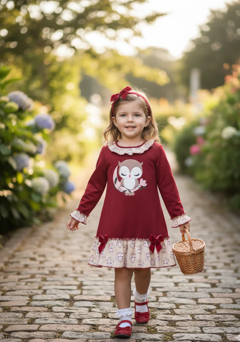 Vestido sudadera con dibujo de osito y volante estampada con hadas lleva lazo para el pelo .