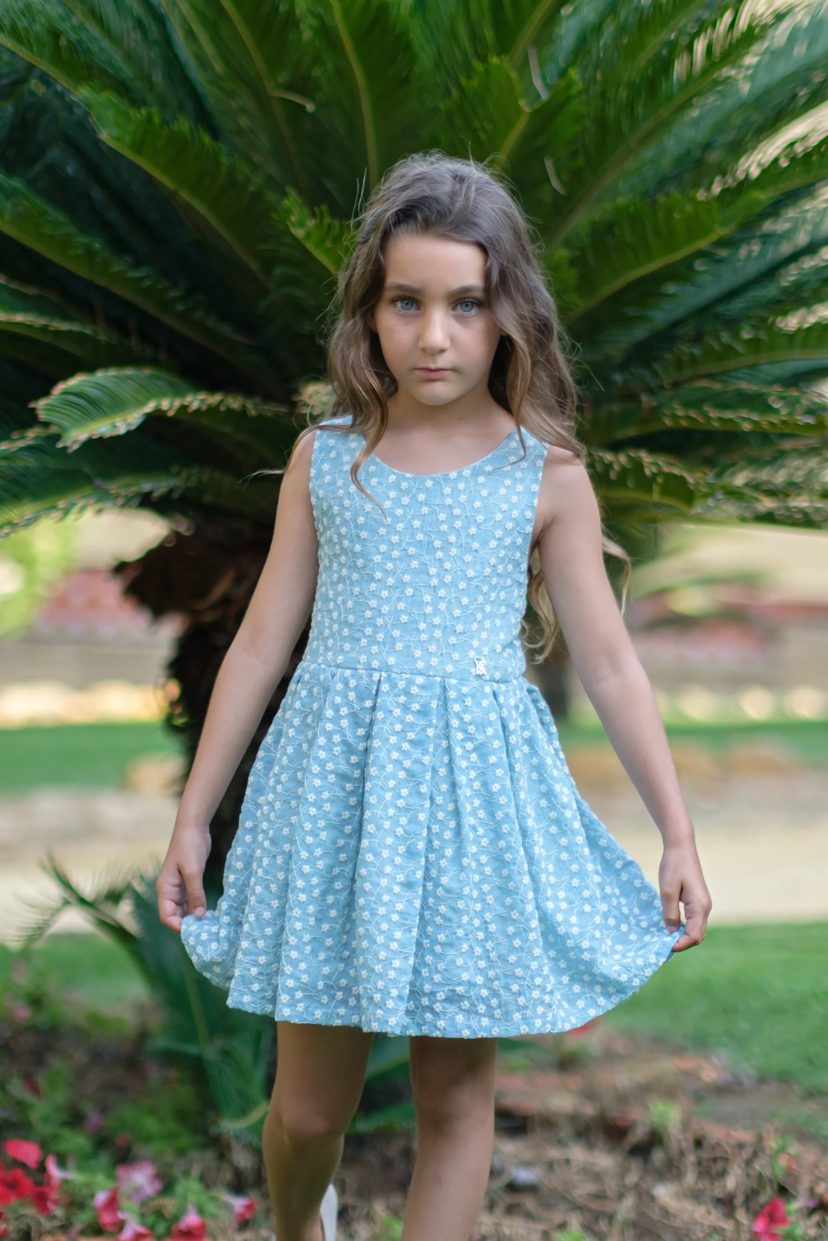 💙 Vestido de tela bordada perforado, espalda cruzada.🩵