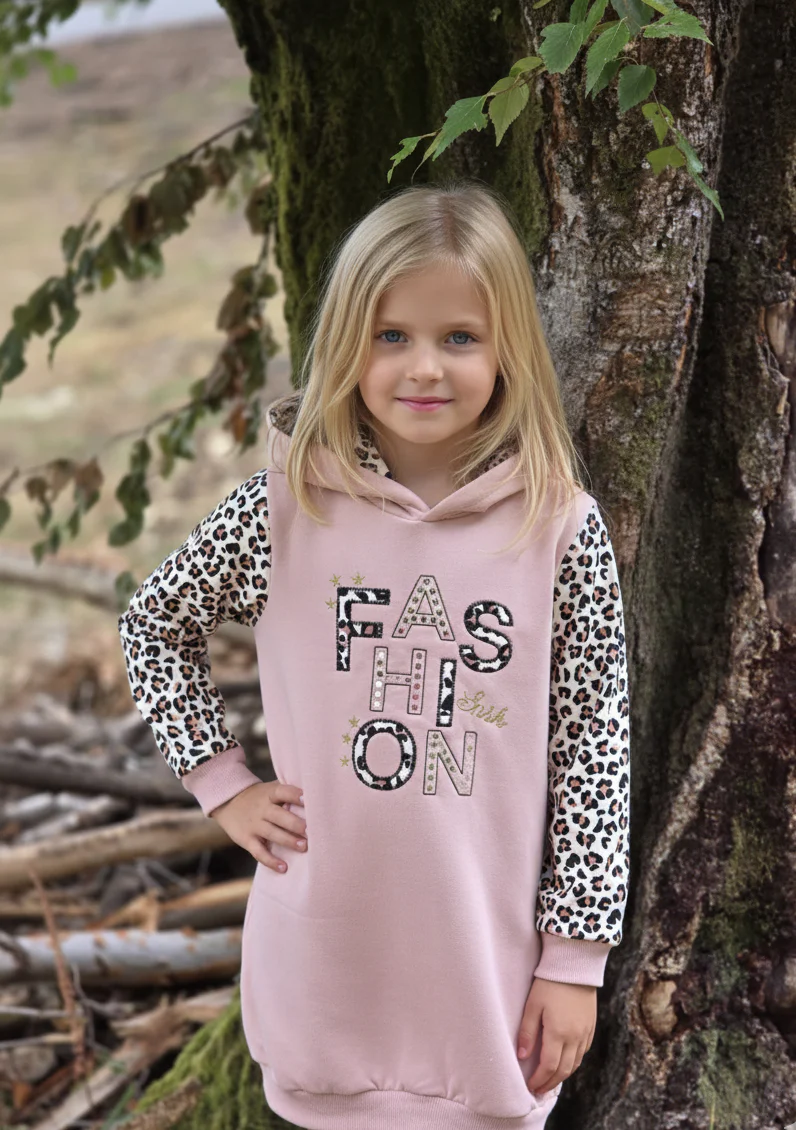 Con capucha forrada y mangas con estampado leopardo a juego. Detalle bordado.