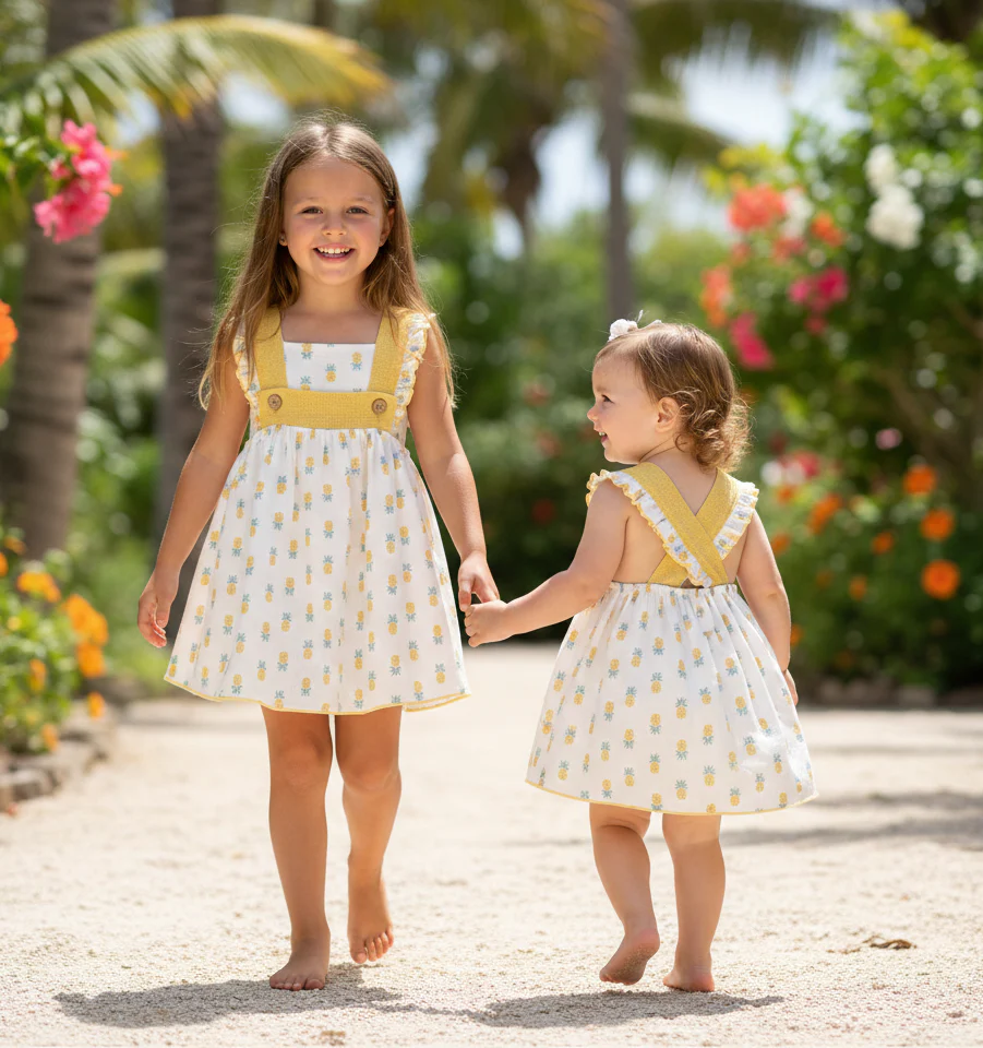 Vestido Infantil «Piñas de Verano» con Tirantes Cruzados