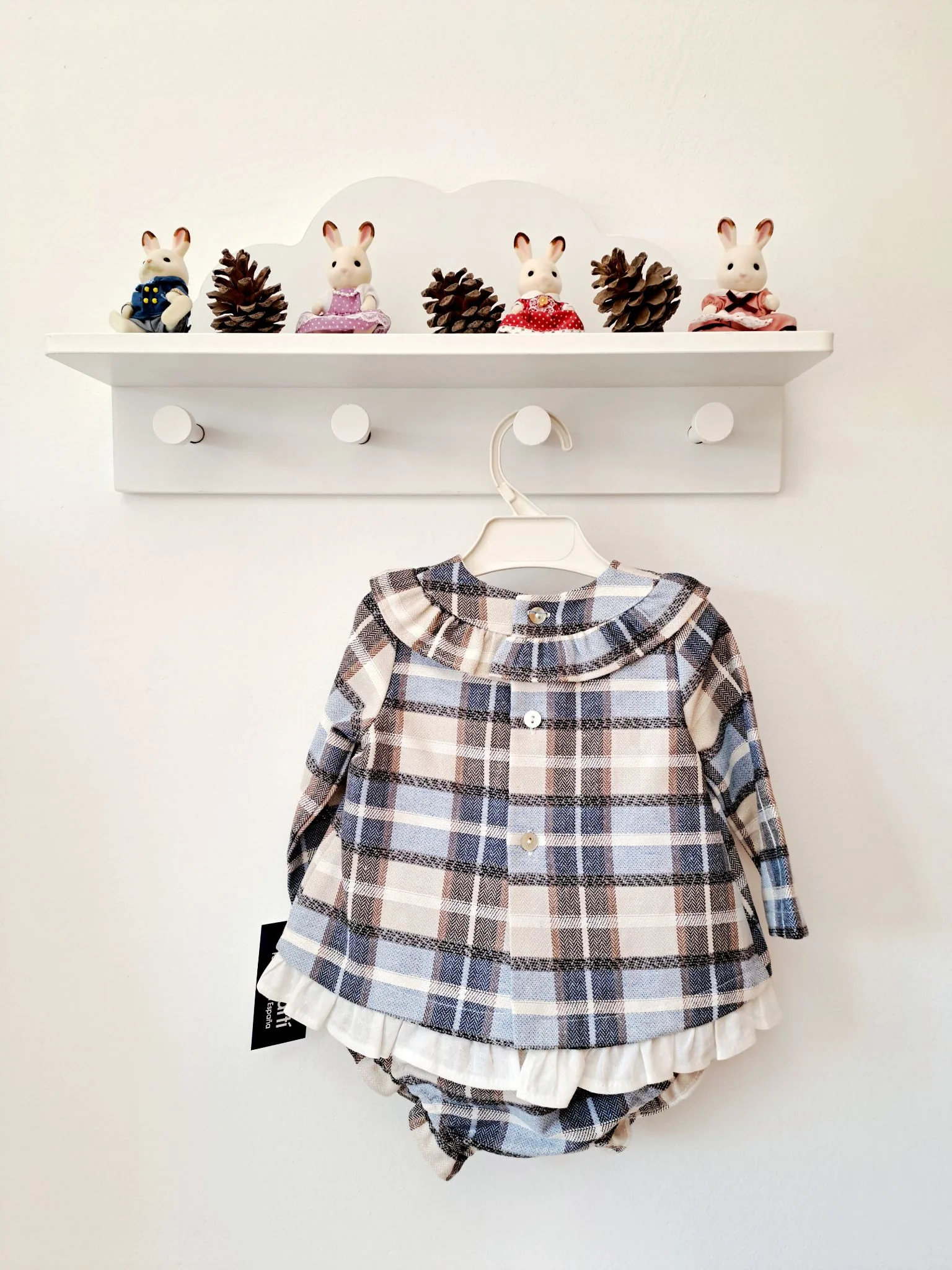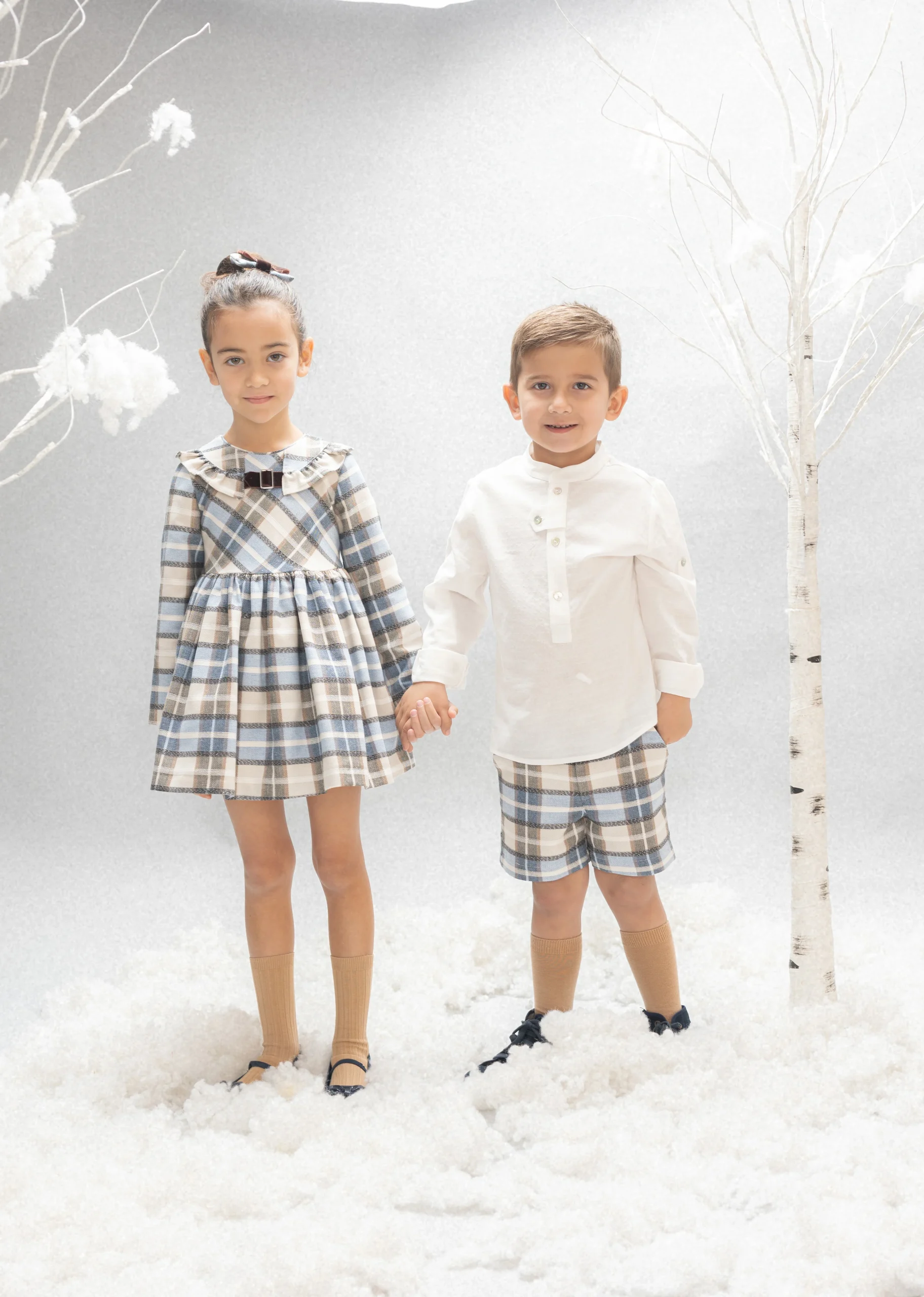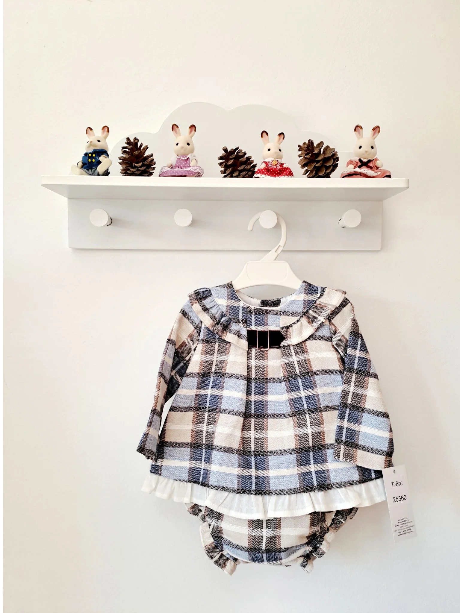 ¡Luce con estilo desde pequeñ@! 💫 El vestido Guggenheim es pura ternura: vestido de cuadros con cuello bebé 🤍, y delicados volante crema ✨. look cómodo, calentito y elegante 🧁👗