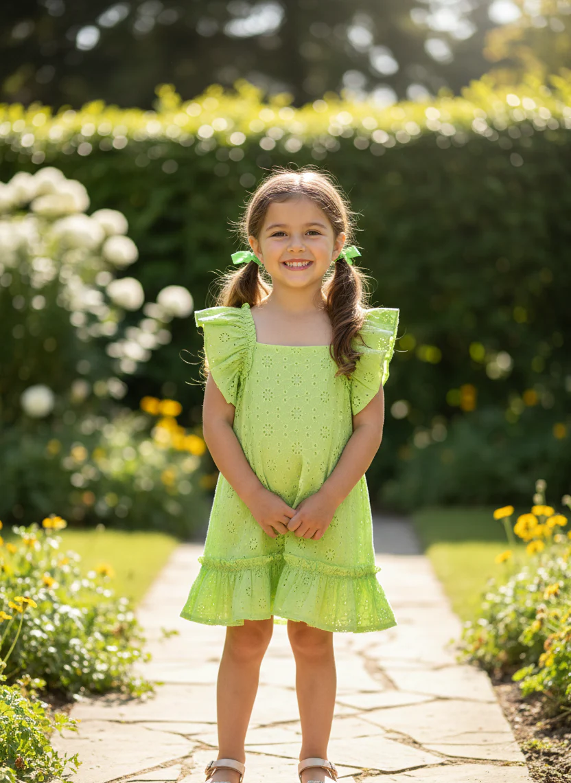 Vestido de tirantes de batistas perforada menta, para bebe y niña