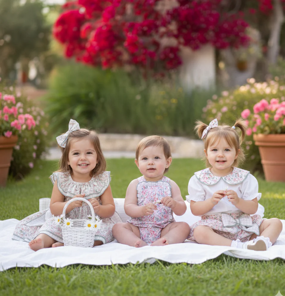 Este vestido presenta un diseño romántico y detallado, ideal para ocasiones especiales o sesiones de fotografía infantil. Se caracteriza por una estética clásica con toques contemporáneos, donde destacan los siguientes elementos: