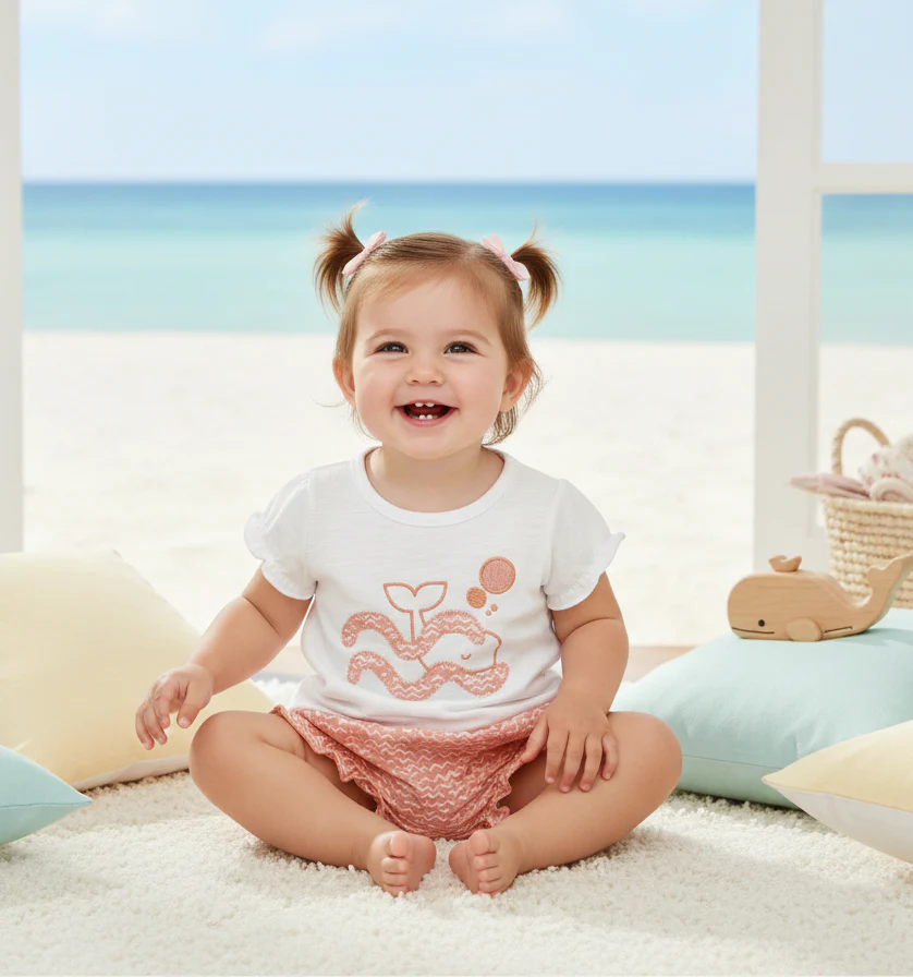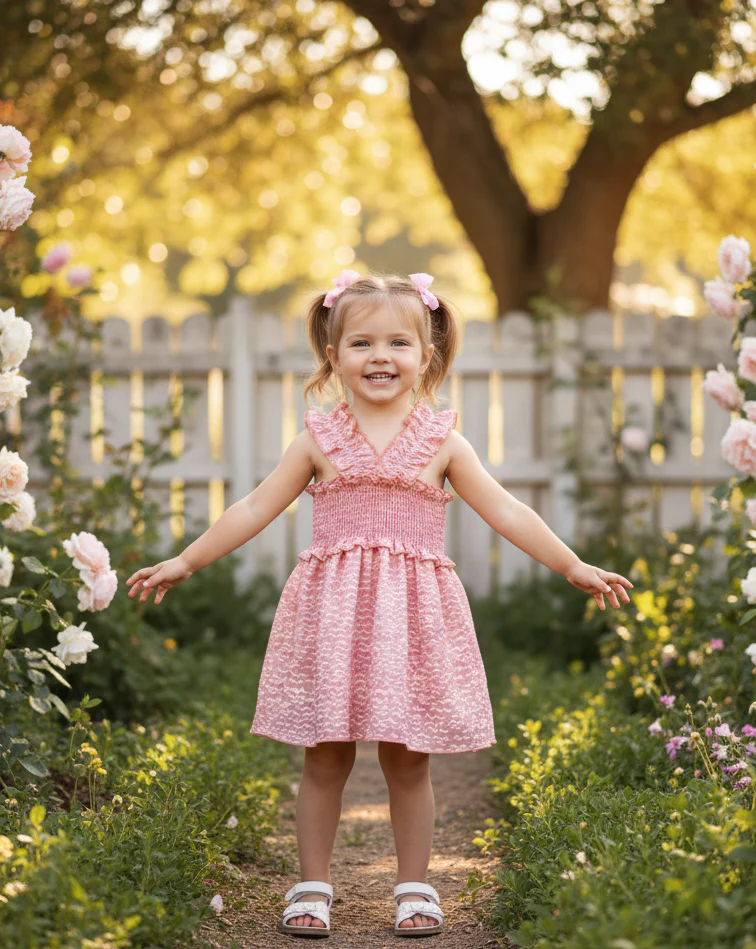 Añade un toque de frescura y encanto al armario de tu pequeña con este delicado vestido de sisa rizada.