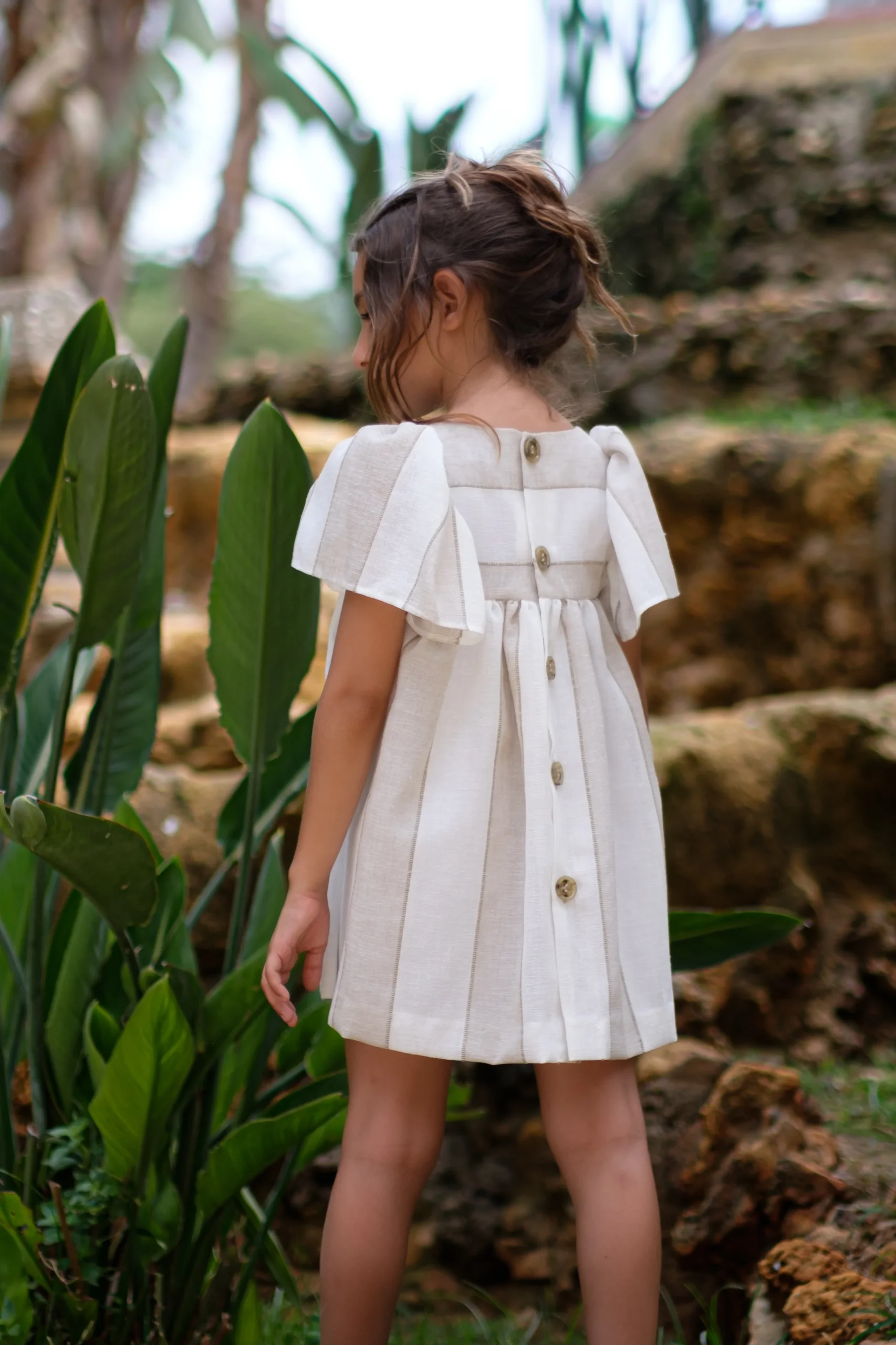 💙 Vestido de rayas anchas con cuello de encaje , espalda abotonada.🩵