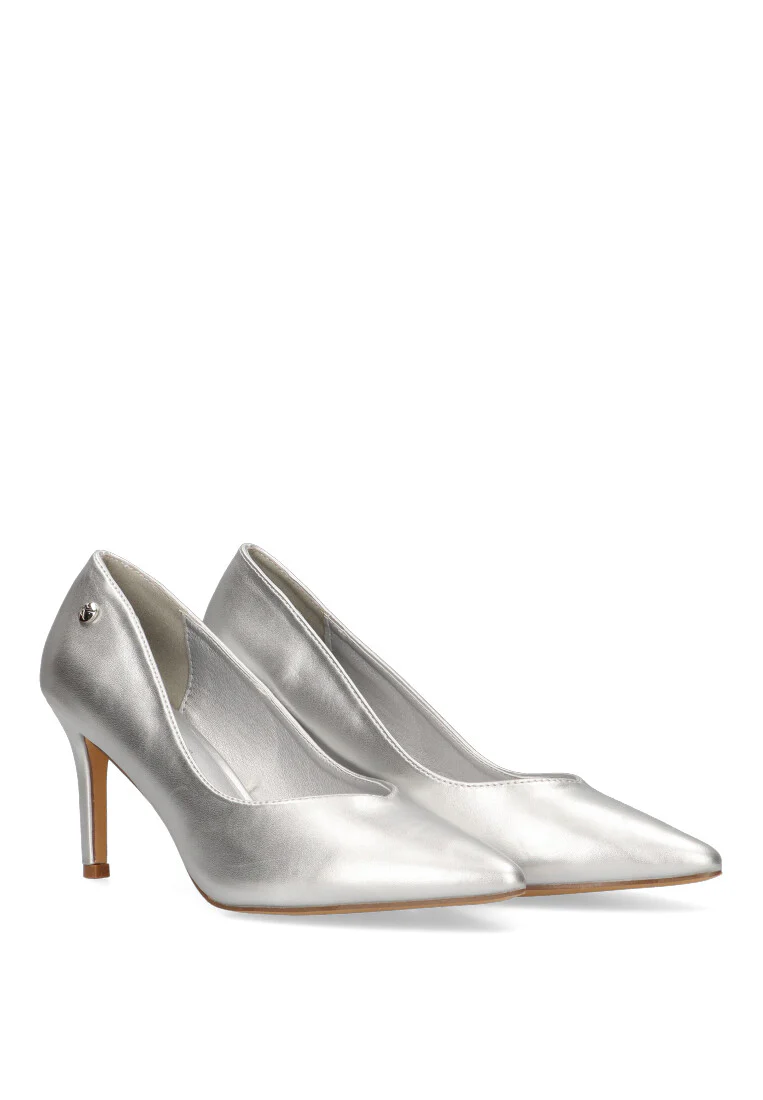 ¿Quieres ser la estrella de la fiesta? ¡Nuestros salones plateados son la elección perfecta para ti! Con su tacón alto y su color brillante, estos zapatos te harán sentir como una auténtica princesa. ¡Imagina todas las miradas que atraerás!